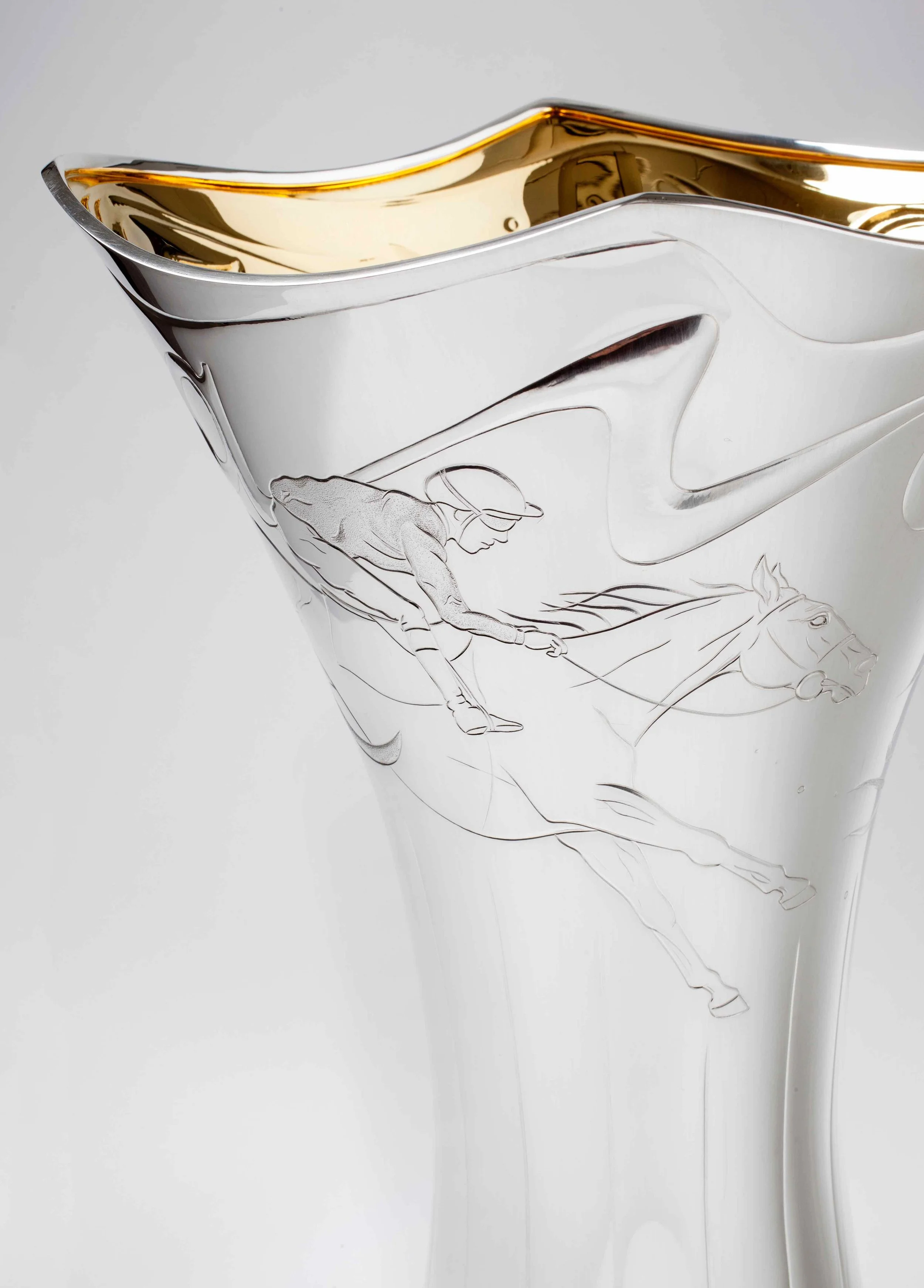 Following an initial selection process last summer, I was lucky enough to be chosen, to design and make this year’s Grand National Trophy! The new sponsors, ‘Randox Health’ have decided for the first time in the history, to give a newly designed Trophy to the winner each year and also to recognize the jockey, trainer and the groom, by presenting them each with a small replica goblet. Great news for contemporary silver too.